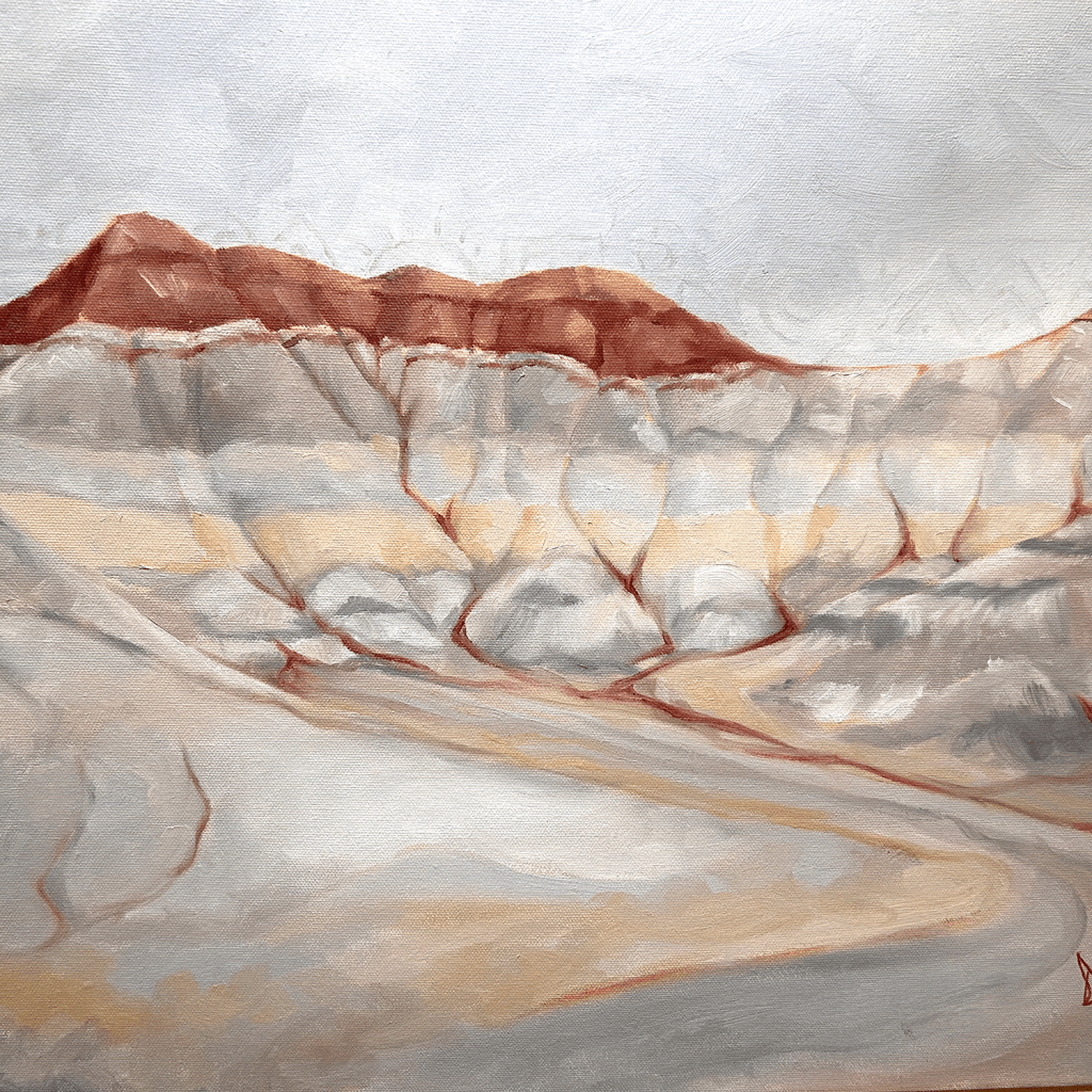 When visiting the Navajo Reservation in northern Arizona, you can’t help but feel the ancient history of the land. All those who have come before, all those who live on the land now, and all those who will come in the future. Even through that timeline, these ancient formations will stay the same. So I have painted ancient petroglyphs like those carved into the cliffs nearby by the Shamans who worked their magic for their people on this precious land.
