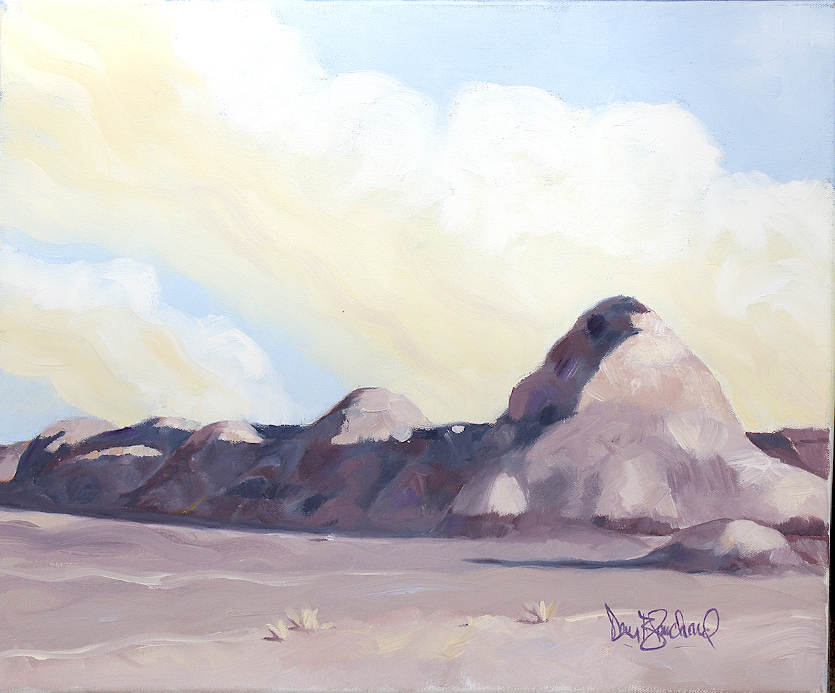 Mid-day on the Chinle is quiet, peaceful and calm. The colors of the minerals in the layers aren’t easy to see at that time of day, and the tint of the morning sun often touches the clouds that rise up early to begin the summer monsoon storm that releases rain late in the day. The call of the coyote, song of the crow and a light breeze brings the experience home to the heart.